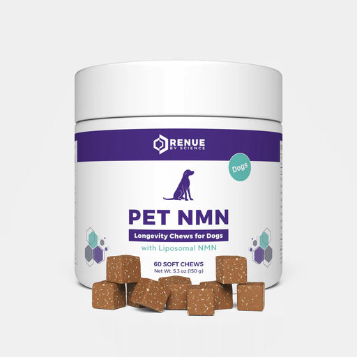PET NMN Longevity Chews for Dogs provide a blend of liposomal NMN, Trans-Resveratrol, Boswellia Serrata, Organic Flaxseed Powder, Chondroitin, MSM ...